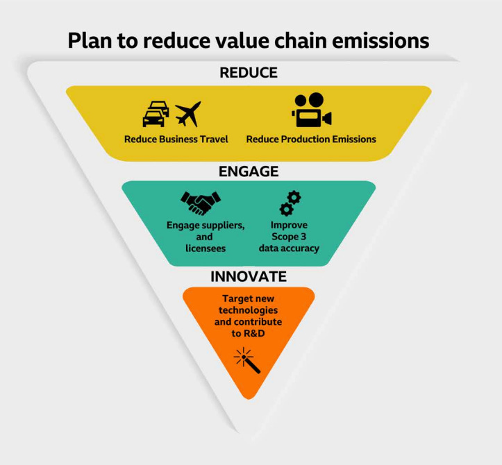 Licensees: Embedding sustainability requirements into licensed products and merchandise, and collaborating with licensees on decarbonisation opportunities.