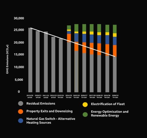 Scope 1 & 2: 46% reduction by 2030/31 and 90% by 2050/51 from a 2019/20 baseline